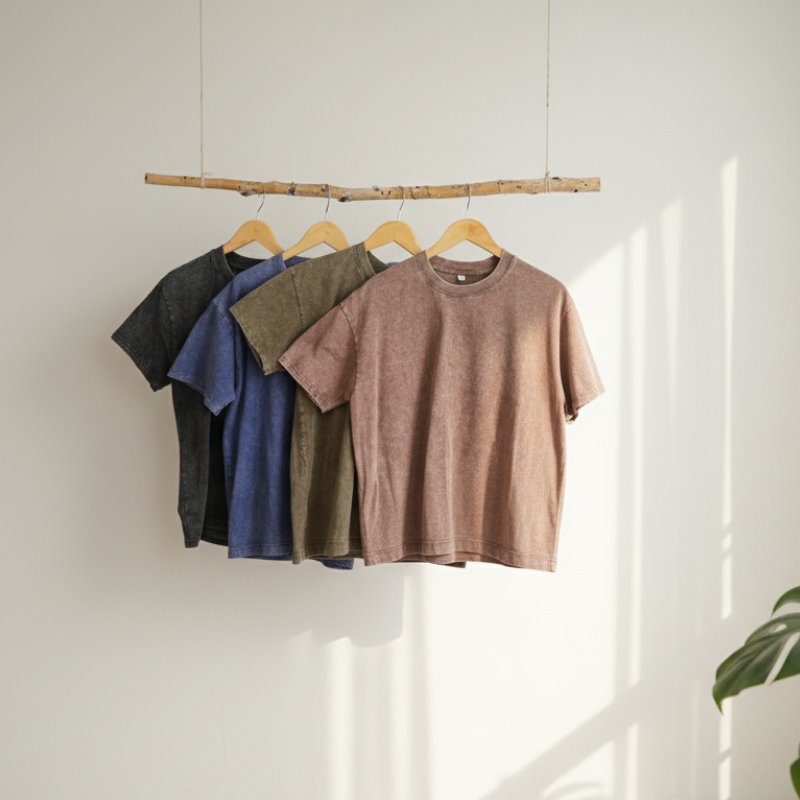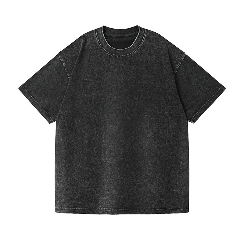 Men’s washed Waxed Dyeing Vintage Short-Sleeved Loose Fit Round Neck Basic Style